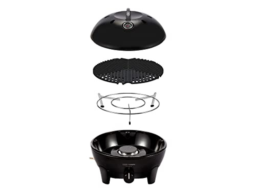 - CONVENIENT AND EASY SETUP: This trendy, versatile gas barbecue offers a 1/4“ quick-release connection that allows you to use it with a quick-release RV hose assembly (not included). This also Includes a pot stand, BBQ top, and dome with a thermometer.
